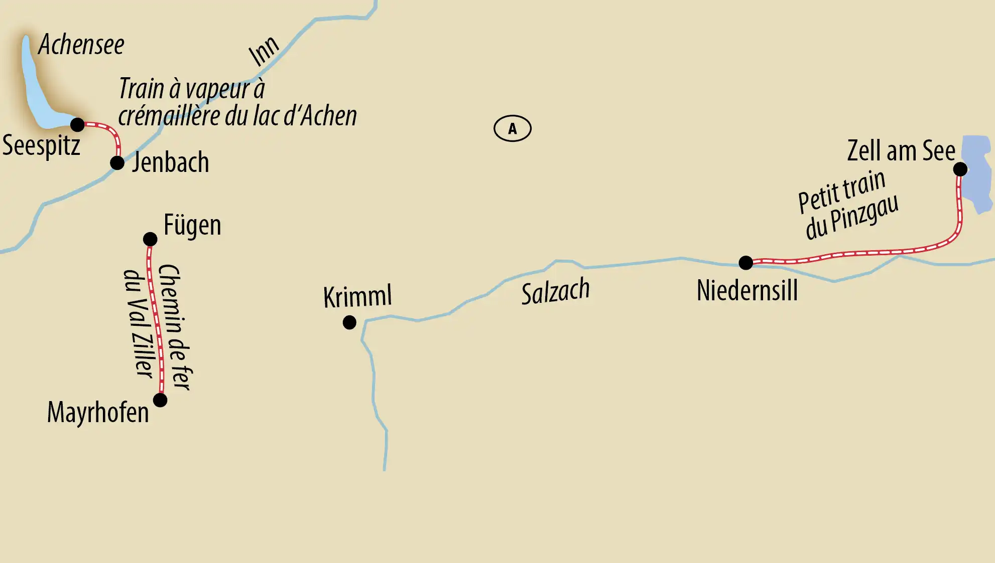 - Parcours Jenbach-Seespitz à bord du train à vapeur à crémaillère du lac d’Achen