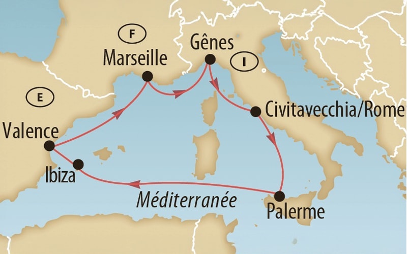 Nous apprécions une journée de détente en mer et profitons des excellentes infrastructures de notre bateau de rêve. 5e jour, mercredi – Ibiza (Espagne) Si Ibiza est avant tout célèbre pour ses fêtes mémorables et ses plages de rêve, elle charme aussi par ses vieilles rues pittoresques et ses villages traditionnels à l’intérieur des terres, ainsi que par la richesse inégalée de sa faune et de sa flore.