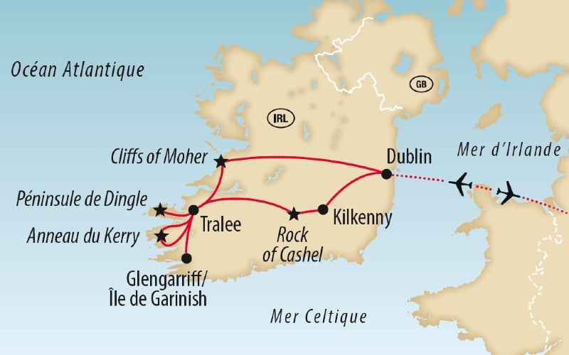 • Entrées: centre d’information des falaises de Moher, oratoire de Gallarus, Kissane Sheep Farm, Garinish Island avec trajet en bateau, Rock of Cashel