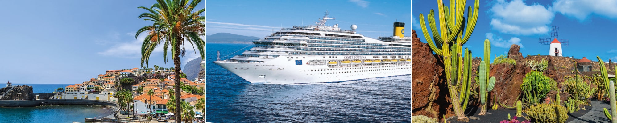 Profitez dès maintenant de nos prix pour réservation anticipée sur le Costa Fortuna vers les îles du printemps éternel. Découvrez la diversité de l’île aux fleurs de Madère, les îles des Canaries baignées de soleil, chacune avec son caractère et son charme propres. Des paysages de dunes comme en plein désert y alternent avec une végétation luxuriante, des villages pittoresques et des kilomètres de plages de sable. Découvrez la diversité unique de cet archipel et assurez-vous votre place au soleil !