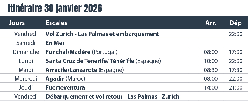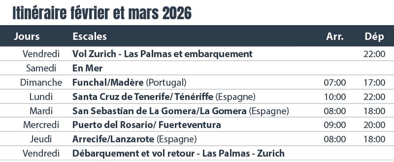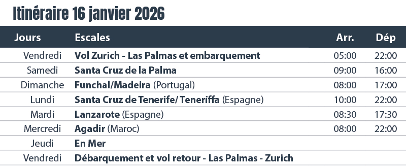 8e jour, vendredi – Las Palmas/Grande Canarie (Espagne) – Suisse