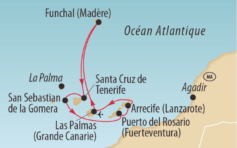 Voyage 1: 2e jour: La Palma / 5e jour: Lanzarote / 6e jour: Agadir (Maroc) / 7e jour: en mer