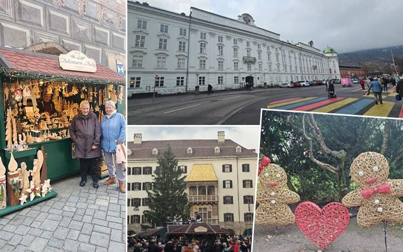 Durch den Hofgarten spazieren wir entlang der Hofburg hinein in die Altstadt bis zum goldenen Dachl. Gerade als ich den Treffpunkt für die Weiterfahrt bekannt geben wollte, fragt mich ein Gast:  «Wo ist denn hier das goldene Dachl?»  Schmunzelnd erkläre ich ihr, dass sie nur hochzuschauen brauche, sie stehe nämlich genau darunter 😊. Lachend zücken wir unser Handy, um ein Foto zu machen. Hier in der Altstadt haben wir Zeit, um den Christkindlmarkt zu besuchen, einen Glühwein zu trinken, feine Tiroler Spezialitäten zu kaufen und um etwas zu essen. Was für mich in Italien die Pasta oder Pizza ist, ist es in Österreich ein typischer Apfelstrudel.  Auf jeder Reise, die ich mit car-tours.ch in Österreich verbringe, esse ich mindestens einmal einen leckeren Apfelstrudel, weil er wirklich nur hier so gut schmeckt. Tatsächlich stammt der Strudel aus der Türkei und wurde dort im 14. Jahrhundert erfunden. Als die Osmanen den grössten Teil Osteuropas beherrschten, wurde dieses Blätterteiggebäck den Habsburgern vorgestellt und vom Adel begeistert aufgenommen. Die Konditoren verfeinerten das ursprüngliche Rezept nach und nach und ergänzten es um saftige Äpfel und süsse Rosinen. Das erste handschriftliche Strudelrezept wurde in der Wiener Rathausbibliothek entdeckt und stammt aus dem Jahr 1696. Ach ja, für mich bitte mit Schlagobers!