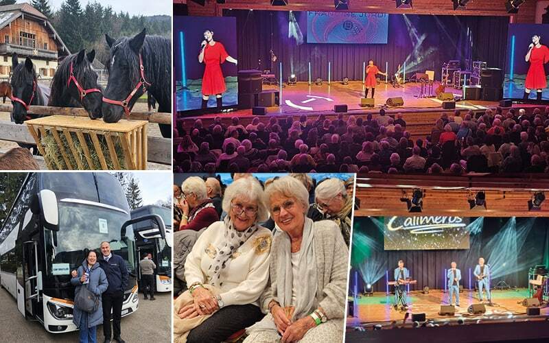 Ganz in Rot und mit einem charmanten Lächeln betritt nun auch Francine Jordi die Bühne und unterhält ihre Fans mit ihren Liedern auf Deutsch wie auch auf Französisch. «s'Füür vo de Sehnsucht» da leuchten fast alle Handys mit der Taschenlampe im Saal. Ihr neuester Song ist die Single Alles wird gut, die am 29. August 2025 veröffentlicht wurde. Sie begeistert nicht nur mit ihrem Gesang, sondern auch mit ihrer quirligen Art. Fröhlich und heiter tanzt sie auf der Bühne wie auch durchs Publikum. Ein Star zum Anfassen! Zum Schluss gibt es dann noch Autogramme und Fotos bevor es zurückgeht zum Hotel. Ein exklusives Konzert nur für uns – viele haben sich heute Abend bei uns bedankt.