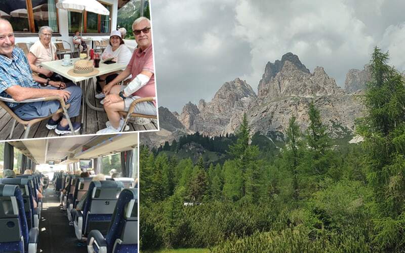 Danach erreichen wir das mondäne Cortina d’Ampezzo. Unsere Stadtführerin Gertrud nennt es liebevoll «die Königin der Dolomiten» und sie hat recht. Cortina strahlt. Edle Boutiquen, schicke Cafés, und rundherum Gipfel, die zum Himmel wachsen. Einziger Wermutstropfen: Die Stadt gleicht derzeit einer Grossbaustelle – Olympia 2026 lässt grüssen! Leider bedeutet das auch eine Busse für unseren Chauffeur Peter, denn der Busparkplatz ist eine einzige Baustelle und irgendwo muss er ja stehen. Aber er nimmt’s mit Humor.