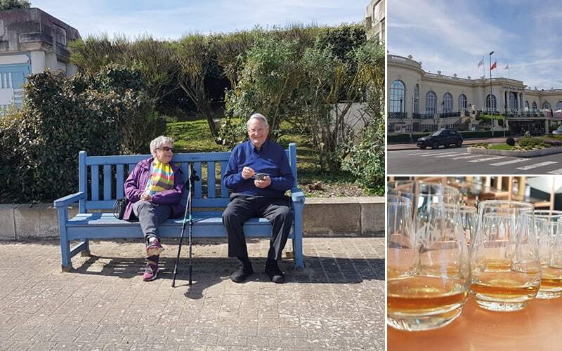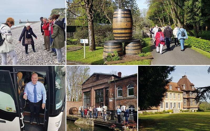 Wir trafen Brigitte beim Bus und sie strahlte mit der Sonne um die Wette. Heute stehen die 3 kulinarischen „C’s“ im Fokus:– Cidre, Camembert und Calvados im Pays d’Auge, dem Land der Apfelbäume der Normandie. Pays d’Auge bedeutet Land des Wassers. Es gibt viele Flüsse, Kanäle und Teiche in dieser Region. Aus dem Cidre, dem Apfelwein wird der Calvados hergestellt. In der Region gibt es sehr viele Pferde und natürlich auch Rennpferde. Da diese teuer sind, teilen sich zum Teil auch zwei Besitzer ein Pferd um damit an Rennen dabei sein zu können. Das Département Calvados ist übrigens das einzige in Frankreich, welches nach einem Produkt benannt ist und nicht nach einem Gebiet. Der Calvados ist schliesslich ein edles Getränk, das langsam genossen werden soll, also nicht „gekippt“ wie ein Schnaps. Brigitte erzählte dazu, dass die Frauen oft ein „Petit canard“ mit Calvados geniessen, da nicht alle Frauen wie Ihre Männer ein Glas davon trinken möchten. Es ist ein Zucker, der nach dem Essen mit Calvados getränkt wird und so im Mund einen schönen Abschluss eines Festmahls ergibt.