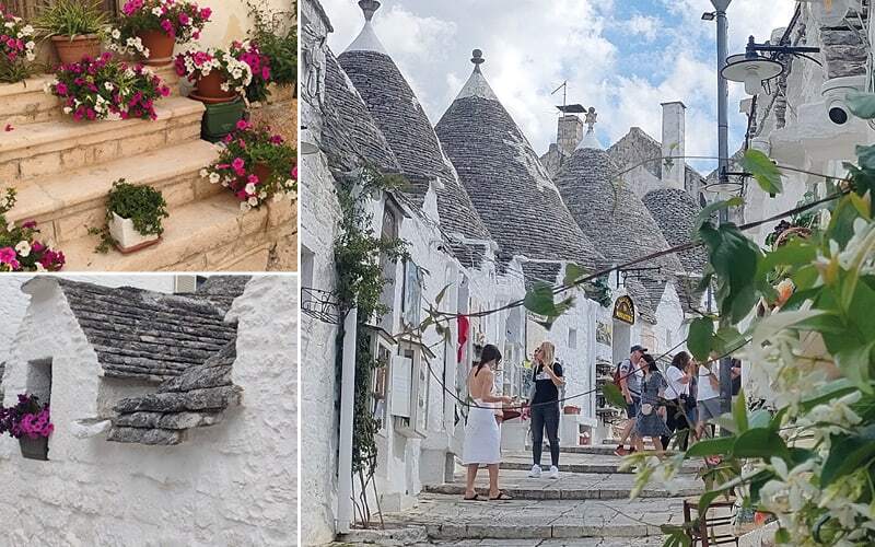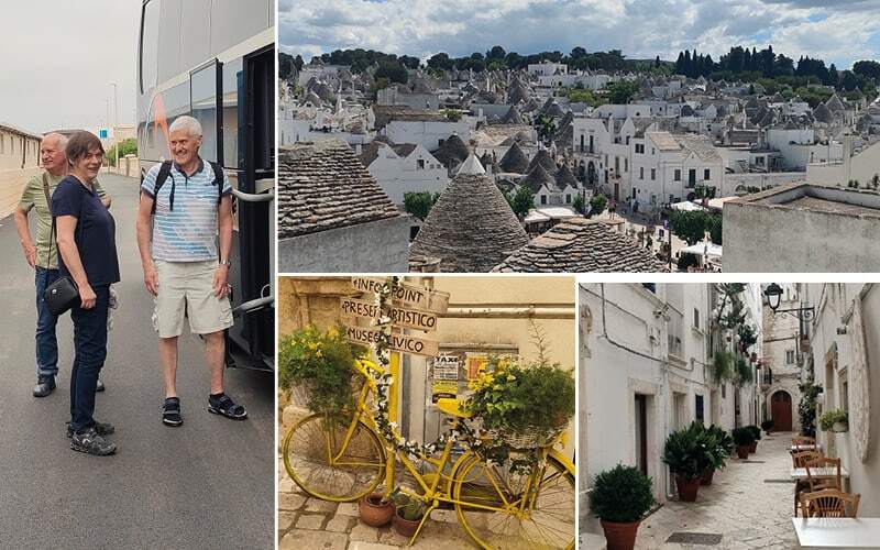 Später fahren wir in die Masserie Priore und werden mit feinen Köstlichkeiten verwöhnt und lernen vieles über die Kunst der Herstellung eines guten und gesunden Olivenöls. Vollbepackt mit vielen gekauften Spezialitäten steigen die Gäste wieder zu Reini in den Bus und wir fahren nach Alberobello, der Stadt der Trulli. Alberobello und seine Trulli bieten einen faszinierenden Einblick in eine einzigartige architektonische Tradition, die bis heute bewahrt und geschätzt wird. Wir genießen einen einzigartigen Blick über etwa 800 Trulli, es ist wie eine Reise in eine andere Zeit, in der die Verbindung zwischen Mensch und Natur besonders deutlich wird.