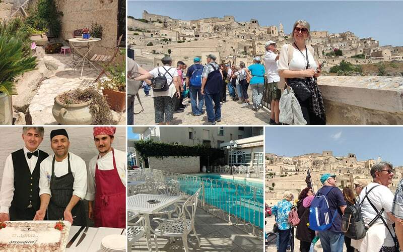 Wir lernen viel über die Spezialitäten der Region, sodass wir anfangen, obwohl wir gerade vom Frühstück kommen, von Mozzarella, Burrata und Stracciatella zu träumen. Die zwei Stunden Fahrt nach Matera vergehen wie im Flug, und unser Spaziergang durch diese UNESCO-Weltkulturstadt beginnt. Unglaublich, wie die Menschen hier ihre Häuser in die Felsen gebaut haben und zum Teil in ärmsten Verhältnissen lebten. Einfach ein einmaliges Erlebnis, und Madia weiß unglaublich viel und gestikuliert so lebhaft, dass wir uns tatsächlich in diese Zeit zurückversetzt fühlen. Der Magen knurrt, und es ist Zeit, sich in einem der vielen netten Lokale hinzusetzen und einheimische Spezialitäten zu probieren.