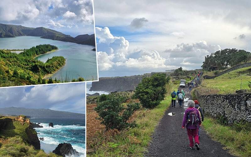 Der nächste Morgen beginnt mit einer Küstenwanderung in Vigia de São Pedro. Gleich nach den ersten Schritten werden wir vom typischen Azorenwetter begrüsst: Starker Wind, Regenschauer, Sonnenstrahlen – alles im Wechsel, manchmal innerhalb weniger Minuten.