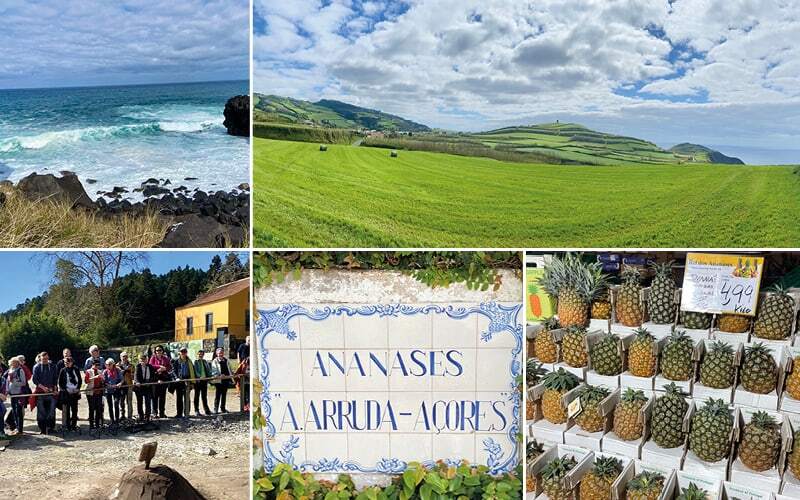 Wir sehen auf unseren täglichen Ausflügen, begleitet von unserer charmanten einheimischen Reiseleiterin, einen Querschnitt durch die hiesige Botanik – die Hortensien haben erste grüne Knospen, doch gerade blühen die Kamelienbäume in einer unermesslichen Farbenpracht und die Azaleenbüsche verzaubern uns ebenfalls. Für die schneeweissen Calla-Lilien macht unser Bus sogar einen separaten Fotostopp! Die unzähligen Grüntöne der erwachenden Natur begeistern, und der Kontrast zwischen blauem Himmel, sanftgrünen Hügeln und dunkelblauem Wasser ist hinreissend. Man kann sich kaum von diesem Schauspiel lösen und würde am liebsten den ganzen Tag einfach nur dasitzen und staunen. Die Azoren tun der Seele gut! In den beschaulichen Ortschaften findet man überall eine Pasteleria, wo es zuckersüsse Cremetörtchen zu naschen gibt, abgerundet mit einem Zentimeter starken Kaffees. Wunderbar! Bei Furnas wird unser Mittagessen im heissen Boden während sechs Stunden niedergegart, und wir geniessen einen genussvollen Eintopf mit viel Gemüse, saftigem Rind- und Schweinefleisch, Huhn und einheimischer Blutwurst. Den muss man unbedingt probieren, denn der Cozido ist ein typisches Festessen in dieser Gegend, wo die heissen Quellen und Fumarolen seit Jahrhunderten Kochherd sind. Die tiefen Kraterseen, denen wir auf unseren Ausflügen sowohl in Lagoa do Fogo als auch in Sete Cidades begegnen, liefern das Süsswasser für die ganze Insel. Gemächliche Wanderungen laden zum Geniessen ein, und bei der zeitigen Rückkehr in unser Hotel reicht es auch für einen Besuch des Wellnessbereich mit Schwimmbad und Dampfbad vor dem Abendessen.