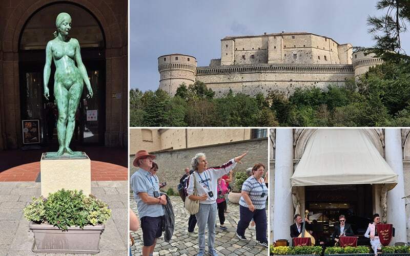Am zweiten Tag führte uns die Reise weiter nach Ravenna, berühmt für seine atemberaubenden Mosaiken. Die Führung durch die historischen Basiliken war nicht nur lehrreich, sondern auch ein Fest für die Augen. Am Folgetag ging es in die kleinste  und älteste Republik der Welt – San Marino. Hier erklommen wir die Festungsmauern und genossen den Ausblick auf die umliegende Landschaft. Der Besuch in San Leo, einem malerischen Bergdorf mit seiner beeindruckenden Festung, rundete den Tag ab. Trotz der intensiven Besichtigungen war die Stimmung in der Gruppe hervorragend, die Teilnehmer unterstützten sich gegenseitig und man merkte, wie die Gemeinschaft immer enger zusammenwuchs.