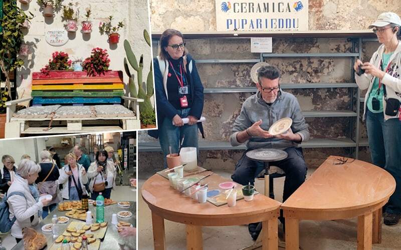 «Tock, tock!» Mirella ermahnt uns zum Zuhören, denn am Nachmittag tauchen wir ein in die Welt der Keramik: In einem kleinen Familienbetrieb in Grottaglie erleben wir hautnah, wie aus einem Stück Ton in liebevoller Handarbeit eine Karaffe entsteht oder ein kunstvoller Teller bemalt wird. Die Hingabe des Künstlers begeistert uns – und beim anschliessenden Bummel durch die berühmte Töpferstrasse kommen so einige mit einem kleinen Souvenir zurück.