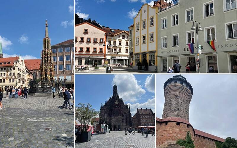 Oben bei der Burg hat man eine umwerfende Aussicht und Übersicht auf die ganze Stadt. Dann gings ins Zentrum. Wir sahen das Albrecht Dürer Haus und den Zugang zu den bekannten Felsengängen, welche im Laufe der Zeit verschieden genutzt wurden, einmal waren sie Gefängnis, dann Vorratskammer und Bierkeller. Der imposante Marktplatz war der Abschluss der Besichtigung und die Gäste wandten sich hungrig den verschiedenen Gaststätten zu um die bekannten, typischen Grillwürstchen mit Kartoffelsalat oder Sauerkraut zu geniessen.
