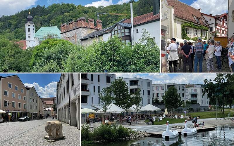 Eine Fahrt durch üppige Natur pur, fruchtbare Felder, Mischwälder und ländliche Dörfer. Immer wieder kreuzten wir die sich schlängelnde Altmühl. Auch das Altmühltal ist romantisch. Eichstädt hat einen imposanten Dom und ist Bischofssitz. Nach kurzen Erklärungen gab es Freizeit und Mittagspause. Im Zentrum gibt es auch einen Elefanten, gehauen aus Kalkstein, poliert. Einige setzten sich darauf zur Freude der andern. Und dann waren da noch die römischen Ausgrabungen mit dem Birianca Kastell. In Beilngries bestaunten wir noch das barocke Rathaus und die Frauenkirche.