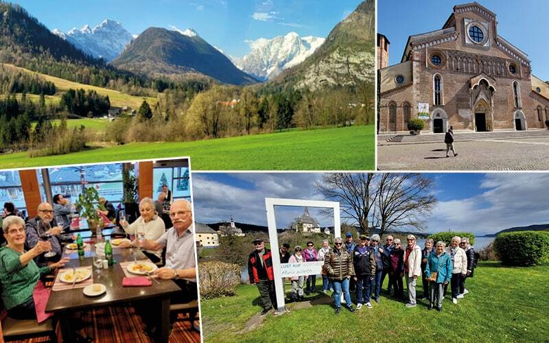 Ein gemütlicher Stadtspaziergang durch Villach eröffnete die Vielfalt dieser charmanten Stadt: bunte Fassaden, Cafés mit Blick auf die Drau und das entspannte Flair südlicher Lebensart. Danach ging es auf eine Rundfahrt um den türkisblauen Wörthersee – ein Postkartenmotiv jagte das nächste. Unsere lokale Begleiterin Maria unterhielt uns charmant und humorvoll mit Klatsch und Tratsch aus der Welt der Reichen und Schönen. In Maria Wörth beeindruckte die malerisch gelegene Kirche auf der Halbinsel – ein Ort voller Ruhe und Weitblick. Später in Velden bewunderten wir das berühmte Schlosshotel, liefen über unzählige Abdrucke berühmter Hände auf dem «Walk of Fame» und flanierten bei frühlingswarmen Temperaturen der jetzt ruhigen Seepromenade entlang. Einfach herrlich.
