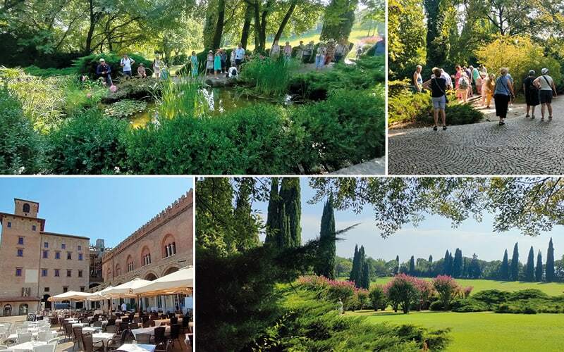 Nach einer gemütlichen Mittagspause geht es weiter zu einem der wohl außergewöhnlichsten Landschaftsgärten Italiens, dem Parco Giardino Sigurtà. Wer nicht so gut zu Fuß ist, kann für ein paar Euro den Bummelzug nehmen oder mit einem Golfcart durch den Park fahren. Die meisten schließen sich jedoch Stefano und mir an. Der Park erstreckt sich über beeindruckende 60 Hektar, bestehend aus botanischen Gärten, Blumen, kleinen Teichen, ausgedehnten Rasenflächen und imposanten Baumriesen wie der 400-jährigen „Großen Eiche“. Ein besonderes Erlebnis ist der Irrgarten, der aber auch seine Tücken hat: Drei meiner Gäste verlieren schnell den Überblick und finden den Ausgang erst mit Hilfe eines freundlichen italienischen Paares wieder.