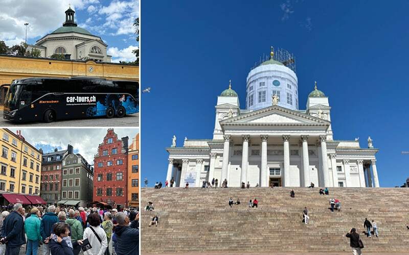 Nun erwartete uns ein Highlight unserer langen Reise: Die dreistündige Fahrt durch den Schärengarten Stockholms. Bevor wir auf unserer Fähre MS Gabriella von der Viking Line die Ostsee erreichten, fuhren wir vorbei an vielen der ca. 24 000 vorgelagerten Inseln und dies bei Sonnenuntergang, fantastisch. Auf dem Schiff durfte bei Live Musik bis tief in die Nacht gefeiert und getanzt werden. Und einige der Gruppe taten das auch. Über 400 Km später wachten wir in Helsinki auf, das seit 1812 die Hauptstadt Finnlands ist. Früher war dies Abo (Turku). 1809 verlor Schweden seine Provinz Finnland im Krieg an Russland. 1812 wollte Zar Alexander l. die Hauptstadt seines neuen Grossfürstentums Finnland näher bei St. Petersburg haben. So wurde Helsinki die neue Hauptstadt. Sie liegt nur 300 Km westlich der Zarenstadt.