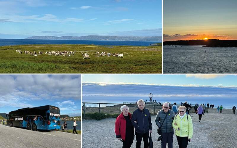 Und so standen wir um Mitternacht auf dem 307 Meter hohen Felsen am nördlichsten Punkt Europas, schauten in die Unendlichkeit Richtung Nordpol, der nur noch 2093 km entfernt ist, und liessen uns bei strahlendem Sonnenschein vor dem weltberühmten Globus ablichten. Ein Touristentraum. Bemerkung am Rande: Das „ewige Eismeer“ ist nie vereist. Der Golfstrom spült warmes Wasser bis nach Murmansk, und macht es erst möglich, dass diese Region so weit im hohen Norden permanent bewohnt werden kann. Nun drehten wir den Bus. Ab jetzt ging es Richtung Süden, zuerst durch die unendlichen Weiten der norwegischen Region Finnmark, vorbei an Kautokeino, dem Winterquartier der Samen. Im Sommer ziehen die Samen mit ihren Rentieren an die Küste und auf die Nordkap-Insel Mageröya. Die Tagesstrecken sind lang, die Ankunft in den Hotels spät. Aber es ist ja noch hell.