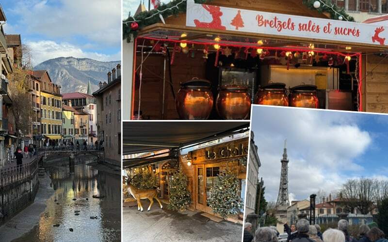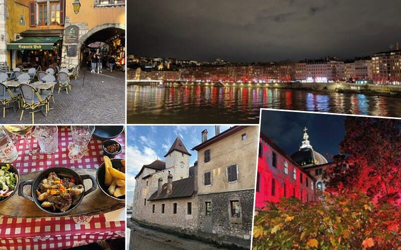 Mit 45 bestens gelaunten Reisegästen fahre ich am Morgen los Richtung Lyon. Da in einem Reisebus bekanntlich alles Platz hat, ausser schlechter Laune, rollen wir beschwingt über die Schweizer Grenze. Unser Mittagsstopp führt uns bei schönstem Sonnenschein ins bezaubernde Annecy, das mit seinem glitzernden See, den kleinen Gässchen und einem Weihnachtsmarkt aufwartet, was aussieht, als hätte dies jemand direkt aus einem Bilderbuch ausgeschnitten.