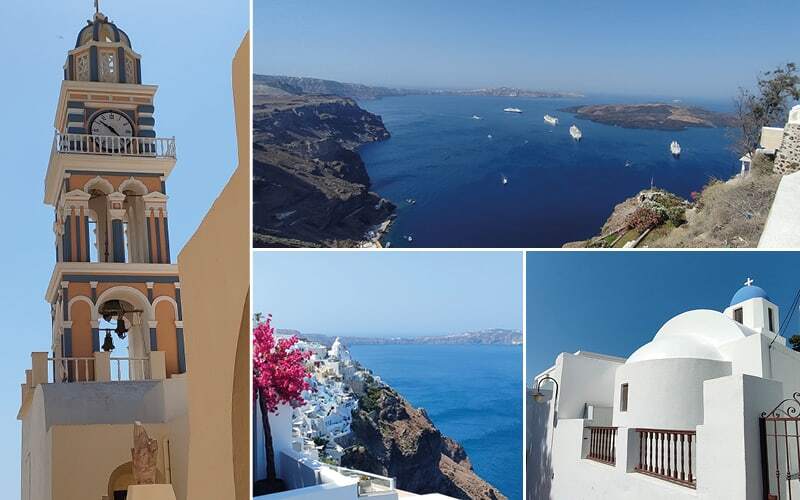 Vom alten Hafen aus muss man aber erstmal irgendwie in die Ortschaft gelangen. Dafür gibt es genau drei Möglichkeiten: eine Gondelbahn, über 600 Stufen im Alleingang das Ziel erklimmen oder man wagt den Aufstieg auf dem Rücken eines Esels, einer alten Tradition Santorinis. Oben angekommen, genießt man die malerischen Gassen, kann durch die zahlreichen Geschäfte stöbern, das bunte Treiben der Touristen beobachten und unzählige Fotos knipsen – ein zauberhafter Ort in Weiß getüncht.