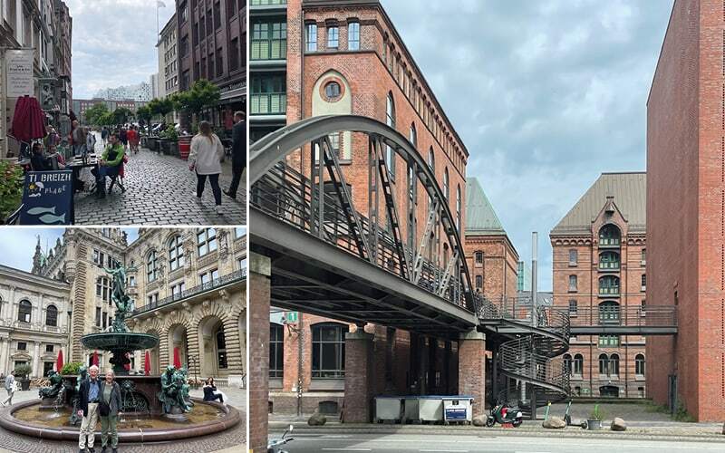 Nach dem Rotlicht Milieu kommen wir an die Aussenalster, wo die Stars und Sternchen ihre Villen bewohnen. Der Quadratmeterpreis bewegt sich hier um die €10’000. Auf der Ostseite der Alster wohnen die Alteingesessenen Hamburger wie z.B. Curd Jürgens oder die Fielmann Familie. Jeder Hamburger darf hier einen Baum pflanzen, wenn er heiratet. Die Rundfahrt führt uns weiter durch die Stadt, vorbei am Jungfernsteig (wo es keine Jungfrauen mehr gibt) bis hin zur Speicherstadt mit ihren roten Backsteingebäuden und den Kanälen dazwischen. Berühmte Museen wie die Miniatur Wunderwelt mit ihren 1’100 Zugformationen in Kulissen aus aller Welt haben hier ihre Heimat. Leider muss man Tickets weit im Voraus buchen oder stundenlang anstehen. Ein Highlight ist sicher der Michel, wie die St. Michaelis Kirche liebevoll genannt wird. Alle sind beeindruckt, von der Architektur und den verschiedenen Orgeln, die auf 3 Seiten angeordnet sind. Die ganz Schnellen schaffen es sogar, den Turm zu besteigen und die Aussicht über Hamburg zu geniessen. Andere kommen am nächsten Tag zurück zur Turmbesteigung und zum Gratisorgelkonzert um 12Uhr. Nach der 2-stündigen Rundfahrt werden wir am Rathausplatz ausgeladen. Der Nachmittag steht zur freien Verfügung.