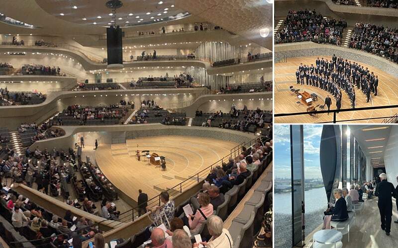 Um 18.30Uhr, nachdem wir uns im Hotel umgezogen haben, beginnt der grosse Moment – wir dürfen eintreten. Zunächst nur bis zur Plaza, die sich zwischen dem Backsteinbau und dem «Kristall» befindet. Man kann rundherumgehen und die Abendstimmung geniessen. Bald wird auch der grosse Saal geöffnet und wir suchen unsere Plätze in den verschachtelten Rängen. Das Konzert des Thomanerchor Leipzig zieht alle in ihren Bann. Rund 80 Knaben und junge Männer im Alter von 9-18 Jahren lobsingen mit ihren wunderschönen Stimmen. Ja, es hat sich gelohnt, die lange Reise auf uns zu nehmen.