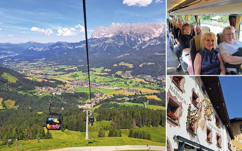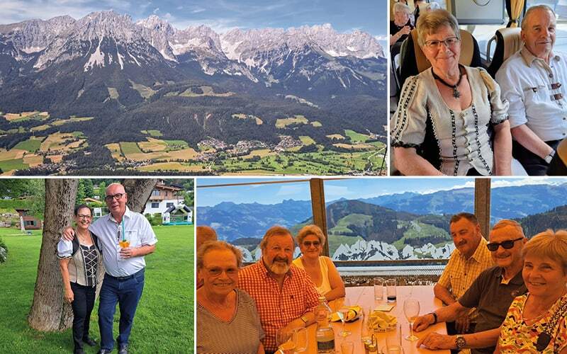 Am nächsten Tag stand eine Gondelfahrt von Ellmau auf den Hartkaiser mit Frühschoppen im Restaurant Bergkaiser auf dem Programm. Es hätte schöner nicht sein können! Die Aussicht auf die grünen Wiesen und Wälder bis ins Inntal war prachtvoll, und die Sicht auf die umliegenden Berge, wie den Wilden Kaiser, das Kitzbüheler Horn und die Hohen Tauern, um nur einige zu nennen, spektakulär. Passend dazu sorgte eine rassige Zillertaler Band mit volkstümlichen Melodien und Liedern für Stimmung. Natürlich durfte mitgesungen und getanzt werden. Und zur freudigen Überraschung für unsere drei älteren Geburtstags”kinder”, gratulierte ihnen die Band namentlich und spielte auch speziell für sie auf. Daraufhin liessen es sich zwei der Jubilare nicht nehmen, schwungvoll jugendlich das Tanzbein zu schwingen.
