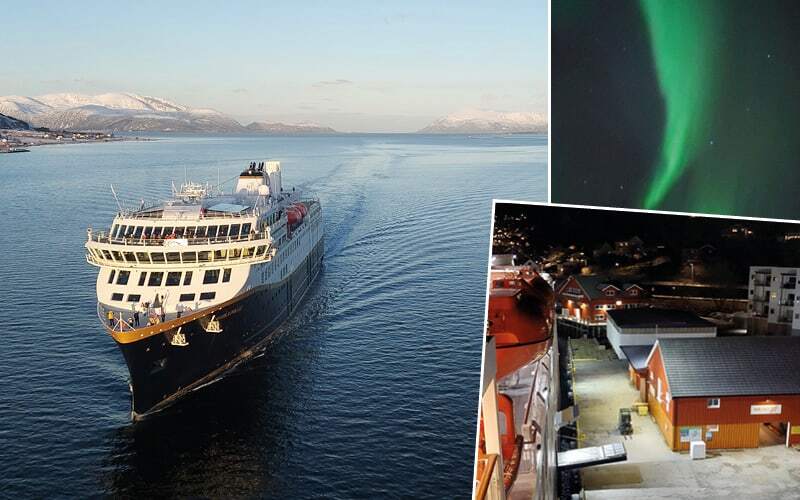 Alle haben bereits die 1. Durchsage, die immer auf Norwegisch erfolgt, verstanden und sind auf dem Weg auf Deck 9. Und es wurde eine lange Nacht … So einen Nordlichter-Sturm habe ich selten gesehen. Das kann man auf dem Foto gar nicht wiedergeben, und ich bin glücklich für unsere Kunden, die der Kälte trotzen. Um kurz nach 21 Uhr legen wir in Svolvær auf den Lofoten an. Die Magic Ice Bar am Hafen lockt für einen Besuch. Kurz vor Mitternacht hat der Kapitän noch eine Überraschung für alle an Bord. Er segelt bis an die Einfahrt des Troll Fjordes und leuchtet diesen mit den Bordscheinwerfern aus. Im Winter ist es den Schiffen wegen der Lawinen und Steinschläge verboten, den Fjord zu befahren. Alle sind noch wach und lassen sich dieses Spektakel nicht entgehen. Und auch dort sieht man die Nordlichter am Himmel. Eine wunderschöne Kulisse. Was für ein Tag in der Mitte von Norwegen. Wir sind alle nur begeistert.
