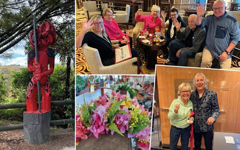 Am Abend wird der Anker gelichtet und unsere Reise geht weiter Richtung Amerikanisch-Samoa. Herrlich, wieder 3 Tag Nichtstun…. Am nächsten Tag kommt eine Durchsage unseres Kapitäns: Liebe Gäste, Aufgrund eines aufziehenden Sturms, müssen wir die Route ändern und das schlechte Wetter, aus Sicherheitsgründen, grosszügig umfahren. Wir werden daher Samoa nicht anlaufen können und nehmen direkt Kurs auf Tauranga in Neuseeland. Etwas verwirrt sind wir jetzt schon, aber wenn der Kapitän sagt, dass wir das machen, dann akzeptieren wir es so, wie es ist. Der Mann kennt sich aus und weiss schon, was er tut. Nun denn. Aus 3 Seetagen werden 7…. Ähm. Aber das Schiff, seine Besatzung und seine Crew wissen, wie sie uns bei Laune halten und wie sie uns verwöhnen können. Wir geniessen es in vollen Zügen. Das Essen an Bord ist ja hervorragend und dann gibt’s halt Schlemmertage. Abnehmen können wir dann daheim wieder. Genau, so machen wirs. Dafür kommen wir einen Tag früher in Mount Manganui an. Das ist der Hafen von Tauranga Somit haben wir Zeit, neben unserer Exkursion, den kleinen Ort ausgiebig zu erkunden und die Einheimischen etwas besser kennenzulernen. Uns gefällts. Es ist einfach ganz entspannt. Und in Mount Manganui gibt’s die besten Fish an Chips auf der ganzen Welt. Nichts wie hin. Am nächsten Tag holt uns unser Bus und unsere Reiseführerin Saskia ab. Wir fahren der wunderschönen Küste entlang und bestaunen die vielen Surfer. Nach 1,5 Stunden sind wir beim Nationalpark. Dort werden wir von den Maoris begrüsst und erfahren einiges von ihrer Kultur. Weiter geht’s mit einem Spaziergang zu den Geysiren. Das heisse Wasser zischt hoch in die Luft.