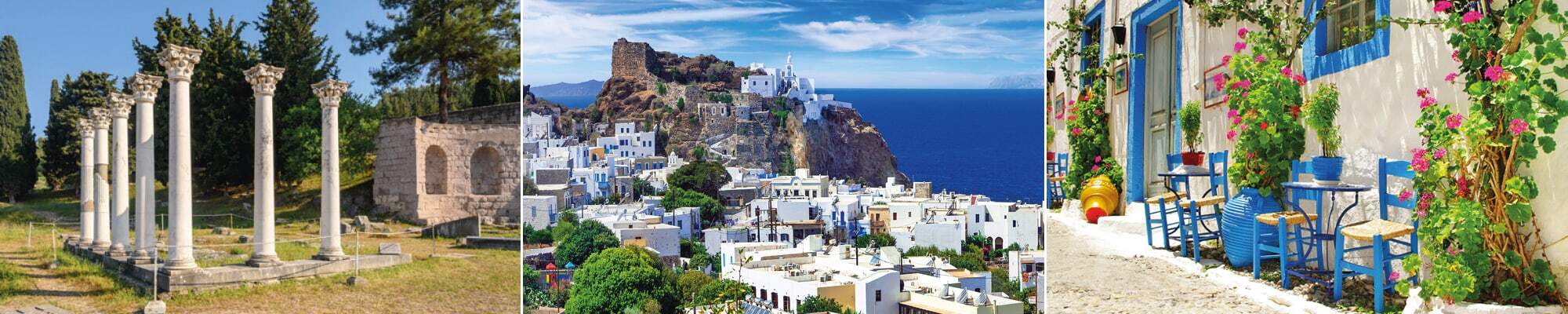K Kultur gibt es genug auf dieser schönen Insel: Asklepios, die wichtigste antike Stätte, ein religiöses Heiligtum, das auch als Heilzentrum und als Schule der Medizin genutzt wurde. Auf den ersten Blick erscheinen uns diese Ruinen nicht aussergewöhnlich, doch die Geschichte, die uns der lokale Reiseleiter Georgios an diesem Ort der Ruhe erzählt, lässt unsere Gedanken 2000 Jahre zurückschweifen. Dabei geniessen wir auch die prächtige Aussicht. Ja, damals glaubte man, Krankheiten seien eine Strafe der Götter und könnten nur durch Gebete geheilt werden.