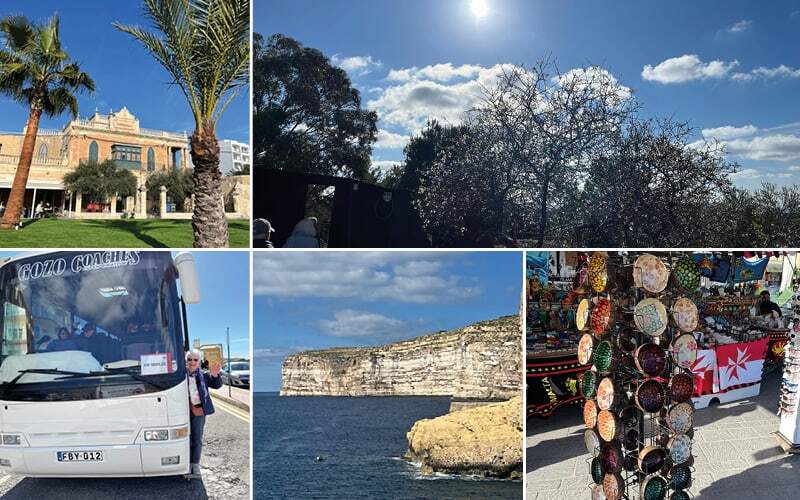 Unternehmungslustig starten wir am frühen Morgen. Wir wollen die 1. Fähre erreichen, was wir auch schaffen, da die ganze Gruppe pünktlich zur Abfahrt im Bus sitzt. Nach einer kurzen Fahrt sind wir schon am Hafen und die Fähre bringt uns nach 25 Min. zur Insel Gozo. Zum Archipel gehören 3 Inseln: Malta, Gozo und die ganz kleine, auch bewohnte Insel Comino. Die Bevölkerung von Malta spricht einen neoarabischen Dialekt, bespickt mit Italienischen und Arabischen Wörtern und das ganze untermalt mit Englisch.