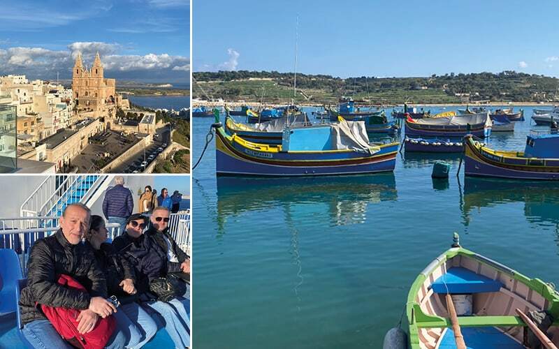 Am dritten Tag steht ein fakultativer Ausflug auf die kleine Nachbarinsel Gozo auf dem Programm. Der Fährhafen liegt nicht weit vom Hotel und wir können direkt auf die griechische Fähre Nicolaus gehen und 30 Minuten später in Gozo wieder aussteigen. Auch heute ist das Wetter mild und windstill, so können wir uns oben auf dem Deck die Meeresbrise um die Nase wehen lassen.