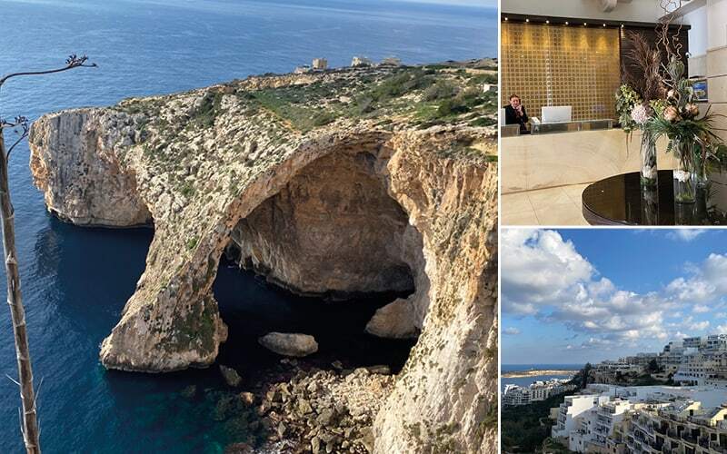 Wir wohnen im tollen Hotel Maritim Antonine & Spa in Mellieha mit Panoramablick auf das Meer. Wir werden während des ganzen Aufenthalts sehen, dass es uns im Hotel wirklich an nichts fehlt. Angefangen mit einem ausgezeichneten Frühstücksbuffet, über eine grosse Wellness Abteilung mit In- und Outdoor Pool, Massage, Sauna, Dampfbad, bis hin zu den eleganten Zimmern. Hier werden wir uns wohlfühlen.
