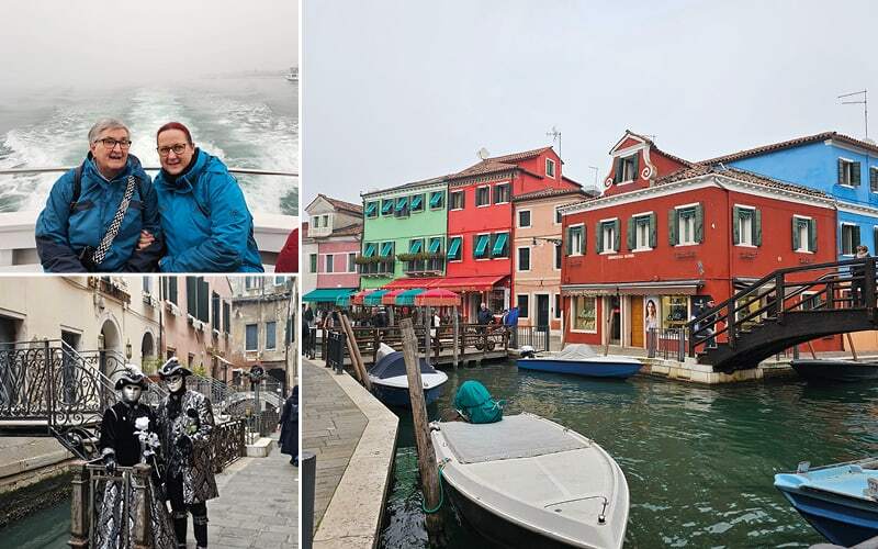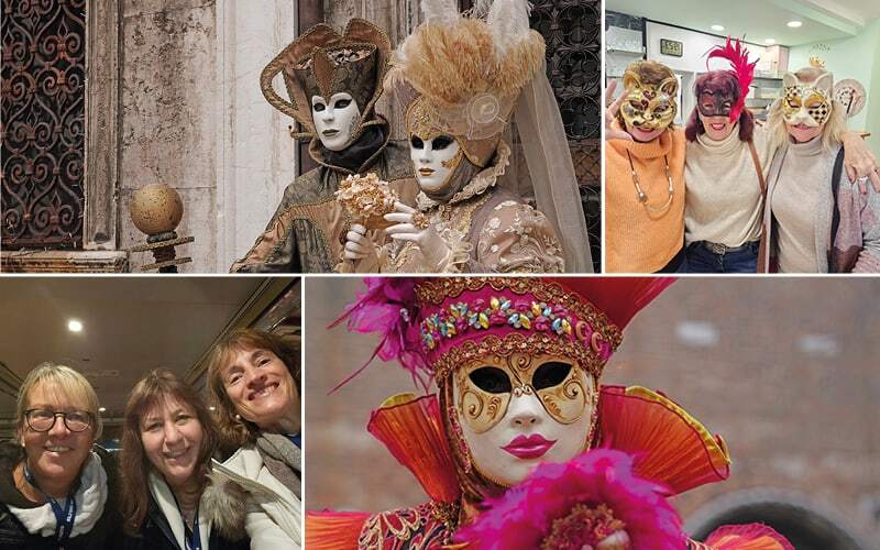 Jürg, unser Chauffeur – ein Berner Gieu der im Kanton Fribourg wohnt – holt unsere Gäste in Basel, Aarau, Pfäffikon und Sargans mit einem Lächeln und viel Humor zur frühen Stunde an den Einsteigeorten ab. Im Basel begrüssen wir die ersten 10 Damen- das nenne ich mal Frauenpower! Bis Sargans haben sich die Gäste im Bus schon etwas kennengelernt und als wir gegen Abend Lido di Jesolo erreichen ist die Stimmung schon gelassen und die Vorfreude auf den Karneval in Venedig ist gross. Gross ist auch der Durst, oder ist es eher der Gluscht, den unsere Gäste an der Hotelbar einen Aperol Spritz bestellen lässt? Wer einen Besuch in der Lagunenstadt bucht liebt die italienische Küche, auch das typische rote Aperitifgetränk und das Dolce far niente. Müde beziehen wir unsere Zimmer nach einer feinen Lasagne und einem leckeren Tiramisu. Am nächsten Morgen suchen wir vergeblich die Sonne in bella Italia. Dichter Nebel verdeckt den Himmel. Trotzdem geniessen wir die Schifffahrt von Punta Sabbioni nach Venedig. Die Lagune im Nebel hat etwas Mystisches, erinnert an den bekannten Krimi Donna Leon und die Gischt des Meeres lässt uns das Salz fast riechen. Casanova nimm dich in Acht – wir kommen!