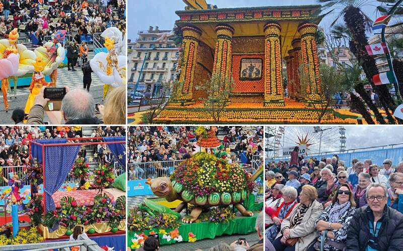 Der Blumenkorso oder die sogenannte Blumenschlacht von Nizza ist weltweit einzigartig. Erfunden hat diese Blumenschlacht, die anfangs als Austausch von Blumen gedacht war, Andriot Saëtone im Jahre 1876, um die Blumenproduzenten von Nizza zu ehren. Dieser Ansatz ist bis heute geblieben: 90% der beim Blumenkorso eingesetzten Blumen werden in und um Nizza produziert. 16 aufwendig geschmückte Wagen bilden den Blumenkorso. Auf jedem Wagen sitzen die Blumenköniginnen, die Mimosen, Nelken, Rosen und viele andere Blumen in die Menge werfen. Jedes Jahr wird ein Thema gefeiert. Der Karneval steht dieses Jahr ganz im Zeichen der Könige und Königinnen vom Pop. Auf ausgezeichneten Tribünenplätzen können wir den Umzug in vollen Zügen geniessen. Danach fahren wir mit vielen schönen Eindrücken zurück nach Italien in unsere Hotels.