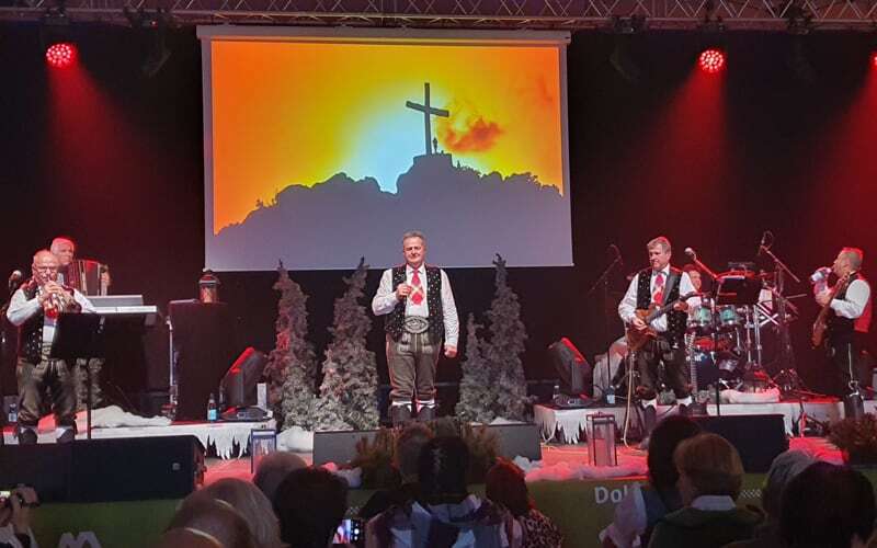Viel Zeit bleibt uns aber nicht, denn es erwartet uns heute ja DAS HIGHLIGHT der Reise – die Kastelruther Spatzen mit ihrem Weihnachtskonzert. Zu Beginn gibt es dann noch etwas Unruhe bei den Tischen. Nachdem die Gäste schon ihre Plätze eingenommen haben, werden von einer Mitarbeiterin des Anlasses kurzum die Tischnummern gewechselt. Es sei zu spät bemerkt worden, dass die Tische nicht korrekt nummeriert waren - ja Potz de Tüüfel - nun herrscht aber ein Wirrwarr. Zum Glück finden dann doch noch alle einen Platz und schon beginnt das Konzert und der Ärger ist vergessen. Die Kastelruther Spatzen präsentieren ihre schönsten Weihnachtslieder und das Konzert wird geführt von Norbert Rier, Sänger sowie auch der Chef der Kastelruther Spatzen. Die Musik versetzt uns in eine harmonische Stimmung und lässt uns gedankenverloren den Klängen und Worten der Lieder lauschen. Weihnachten kommt bald…