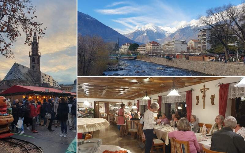 Kurz nach 13 Uhr fahren wir zum zweiten Weihnachtsmarkt heute, dem berühmten Adventsmarkt in Bozen. Auch hier gibt es wieder sehr viele Besucher, was uns aber nicht mehr überrascht. Bozen ist ja berühmt mit dem Mann aus dem Eis. Hier im Archäologiemuseum befindet sich die Mumie Ötzi. Aber auch die Bozner Lauben sind bekannt. Sie sind das Wahrzeichen der Landeshauptstadt und die traditionellste Einkaufsmeile Südtirols. Das war schon im 12. Jahrhundert so, als die Lauben von den Trienter Bischöfen errichtet wurden, um den Handel im damals noch kleinen Bozen anzukurbeln. Viele Geschäfte locken noch heute die Besucher an. Die Häuser in den Lauben gehören noch immer den Einwohnern von Bozen, allerdings werden die Etagen oberhalb der Geschäfte oft als BNB vermietet, da die Besitzer die Häuser meist nicht mehr selbst bewohnen (keine Parkplätze, kein Lift usw.). Nun ist die letzte Gelegenheit noch ein Geschenk zu kaufen, ein Mitbringsel oder auch ein Souvenir, denn morgen ist ja schon die Heimreise in die Schweiz. Zum Abschluss vielleicht noch ein Glas Lagrein Wein in einer Weinstube? Der Lagrein ist eine rote Rebsorte, die nur in Südtirol, hauptsächlich im Bozner Talkessel, speziell im Bozener Ortsteil Gries, angebaut wird. Wir kennen diesen Wein schon, denn die Hotelwirtin hat wieder für Nachschub gesorgt. 😊