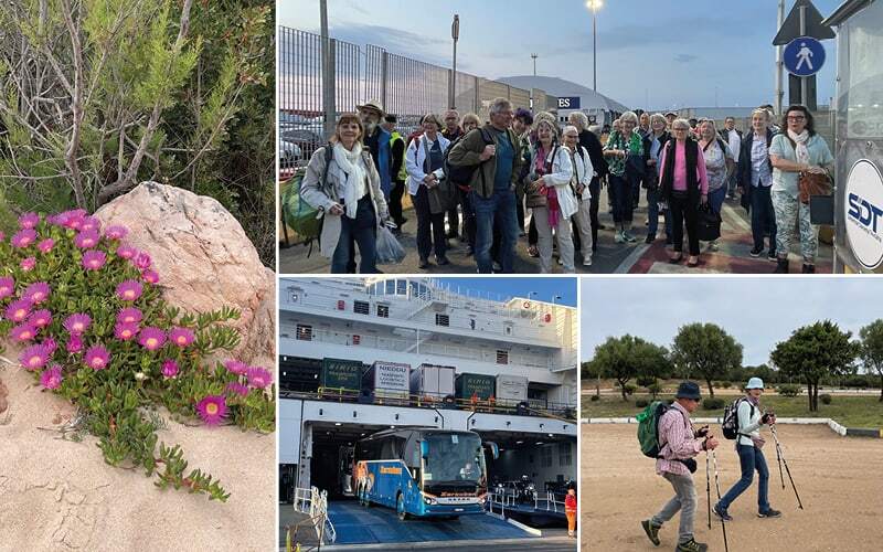 Nach einer ruhigen Nacht auf der Fähre von Livorno nach Olbia empfängt uns ein wunderschönes Morgenrot im Osten und leichte Bewölkung über Sardinien, die sich im Laufe des Tages auflöst. Unser Bus mit Yvo erwartet uns bereits neben der Fähre. Nun beginnt wieder das Zählen. Vier Gäste fehlen, irren noch auf der Fähre herum oder geniessen einfach das bunte Treiben vom Aussichtsdeck. Am Hafengate erwarten uns auch schon unsere Wanderleiter, Sophie und Antonio, die uns die nächsten 4 Tage begleiten. Beides sind echte Sarden und lieben ihre schöne Heimat.