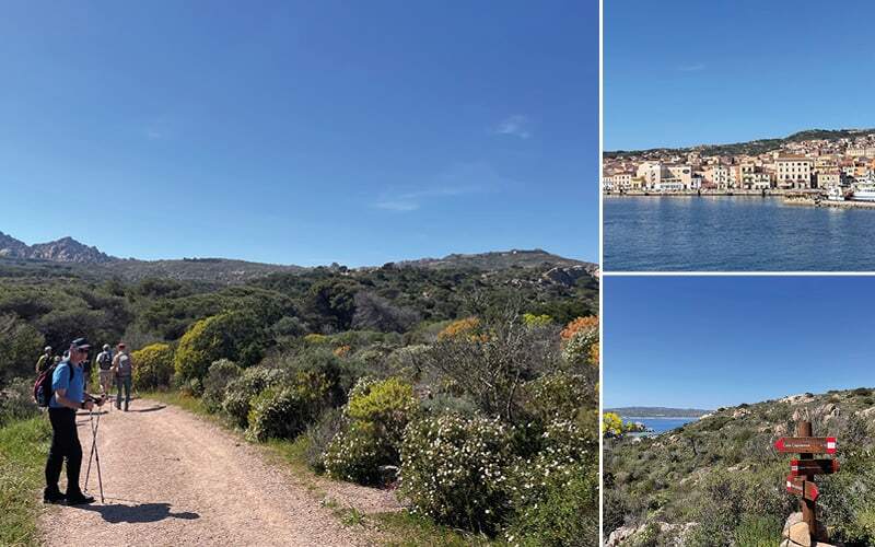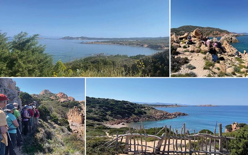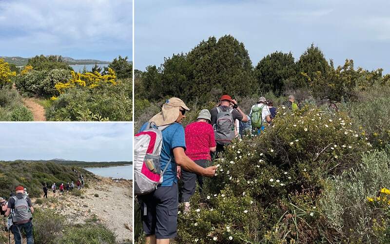 Nach einer kurzen Fahrt beginnt schon die erste Wanderung an der Costa Smeralda, die ihren Namen vom smaragdblauen Wasser erhalten hat. Selbst bei bewölktem Himmel macht sie dem Namen alle Ehre. Sanft geht es durch die Macchia, die immergrüne Buschlandschaft Sardiniens, die sich jetzt ihn ihren bunten Frühlingsfarben zeigt. Immer wieder müssen wir stehen bleiben, die überwiegend gelben und weissen Blüten der Büsche oder eine seltene Blume bewundern, die in einem herrlichen Kontrast zum smaragdblauen Meer stehen. Manchmal sieht man einander kaum, da die Büsche in die schmalen Wege greifen. Dann wieder öffnet sich der Busch und wir haben Meer, Sand und Steine vor uns. Eine Landschaft, so ganz anders als bei uns. Da wir keine Gelegenheit hatten, ein Picknick einzukaufen, ist die Mittagspause kurz. Dafür sind wir gegen 14uhr an der Baja Sardinia, ein noch schlafender, kleiner Badeort, der sich auf die kommende Saison vorbereitet. Im einzigen offenen Restaurant gibt es für jeden Geschmack etwas zu essen und die erste Gelegenheit, den lokalen Wein zu probieren. Die Mutigen geniessen ein erstes Bad im kühlen Meer. Etwa um 16.30 Uhr fahren wir in unserm schönen Hotel in Cannigione ein und können endlich die Koffer auspacken. Die Bar am Pool oder die kleinen Lokale im Dörfli laden zu einem Apero ein. Das grosse Buffet am Abend lässt keine Wünsche übrig.