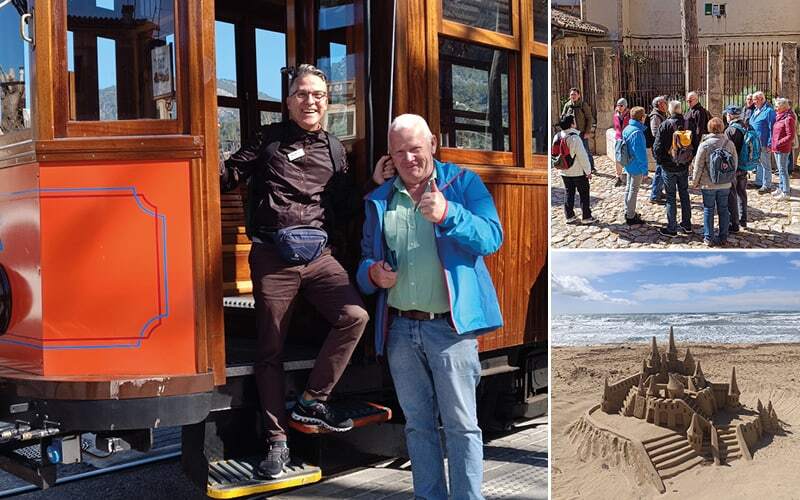An unserem vorletzten Tag holen wir die verschobene Inselrundfahrt nach. Wir fahren in den Nordwesten der Insel und dies mit herrlichem Sonnenschein! Da unser lokale Führer Manolo diesen ursprünglich freien Tag bereits verplant hat, kommen wir in den Genuss von einer lokalen Führerin, die Thera, eine Holländerin, die über 40 Jahre auf der Balearen Insel wohnt. Auch sie gibt uns auf der Busfahrt interessante Einblicke über der Insel und an einem Vorort von Palma steigen wir um in den historischen Zug, auch Orangen-Express genannt. Wir tuckern gemütlich 27 Km durch die malerische Landschaft, passieren 13 Tunnels und einen 52mt hohen Viadukt. Diese Bahnstrecke wurde 1912 eröffnet und anfänglich für den Orangentransport genutzt. Vorher wurden die Früchte auf Karren über den 497 Coll de Soller oder über den Seeweg nach Palma transportiert. In Soller angekommen, steigen wir gleich in die Strassenbahn (Tram) um und schlängeln uns durch die Stadt bis wir den Hafen von Soller erreichen. Dort heisst es nun wieder das Transportmittel wechseln, diesmal gehts aufs Boot. Wir fahren 50 Min. mit leichtem Wellengang der Küste entlang, vorbei an Meereshöhlen, Verteidigungstürme, an einsamen kleinen Buchten und immer Sicht auf das Tramuntana Gebirge. An der kleinen Bucht Sa Calobra legen wir an geben der Gruppe eine gute Stunde Zeit um sich die Umgebung anzuschauen oder sich in den 3 Restaurants zu stärken.