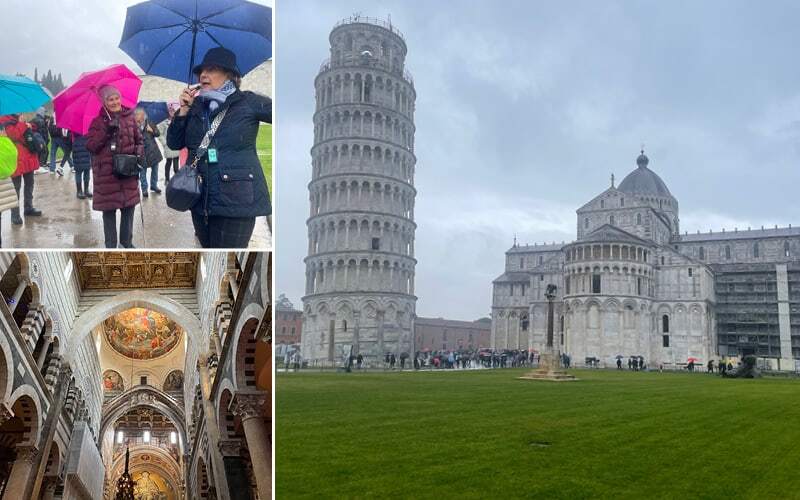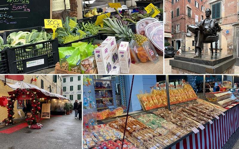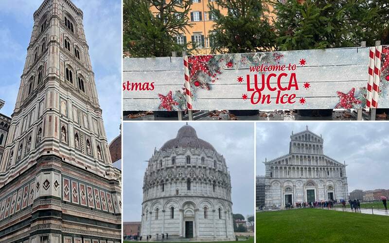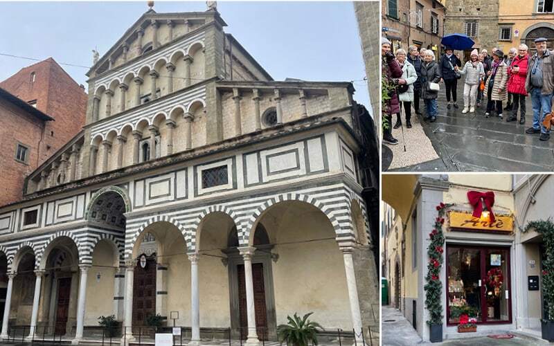 Mit sympathischer, ortskundiger Führung besuchten wir die geschichtsträchtigen Städte Pisa mit dem bekannten schiefen Turm und dem imposanten Domkomplex. Es war auch sehr interessant die Geschichte des schiefen Turms zu erfahren, warum und wieso ist er schief? Nach etwas Freizeit für ein Panino ( italienisches Gebäck) und durchstöbern des nahen Marktes fuhren wir in die Provinzstadt Lucca, mit sehr viel Charme. Inzwischen begann es einzudunkeln und wir konnten die ganze Weihnachtsdekoration bestaunen, so schön. Nach einem Spaziergang gab es eine Überraschung, wir waren eingeladen im Caffè „Stella Polare“ und durften je einen Caffè, oder Espresso oder ein Glas Wein, bestellen. Begleitet von einem kleinen Buffet mit kleinen Sandwiches und köstlichen Süssigkeiten, nicht nur für den Gaumen, sondern auch für das Auge, wurde freudig zugegriffen.