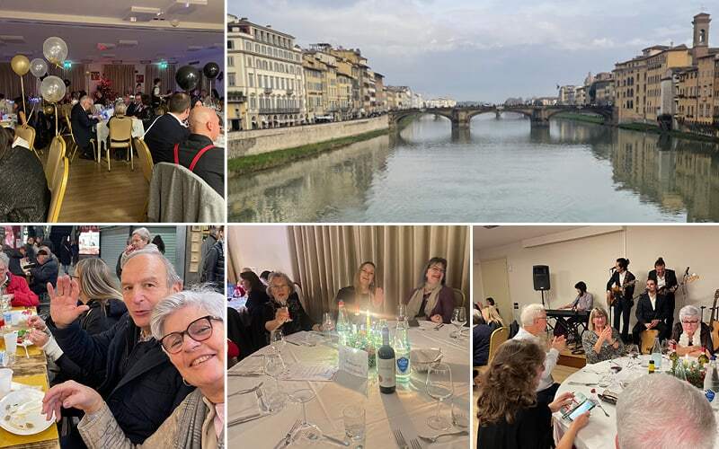 Dann gab es wiederum eine Überraschung. Wir durchquerten einen riesigen Strassenmarkt mit Taschen, Gürteln, Schals, das ganze Programm. Es roch verlockend nach Leder. . Unser Ziel war die zweistöckige Markthalle, wo wir zu einem Apéro Florentino eingeladen waren. Wiederum ein Getränk nach Wunsch und jeder erhielt ein Plättchen mit den feinsten italienischen Spezialitäten wie Salami, Prosciutto, Käse und italienisches Brot, welches nicht gesalzen ist. Dann Freizeit, Caffè und Gelato, schmeckt auch am Silvester. Weiter zum Treffpunkt und zusammen zum Bahnhof und Rückfahrt mit dem Zug nach Pistoia. Dort wartete unser treuer Chauffeur Christoph mit dem Car und brachte uns zurück ins Hotel Villa Cappuci.