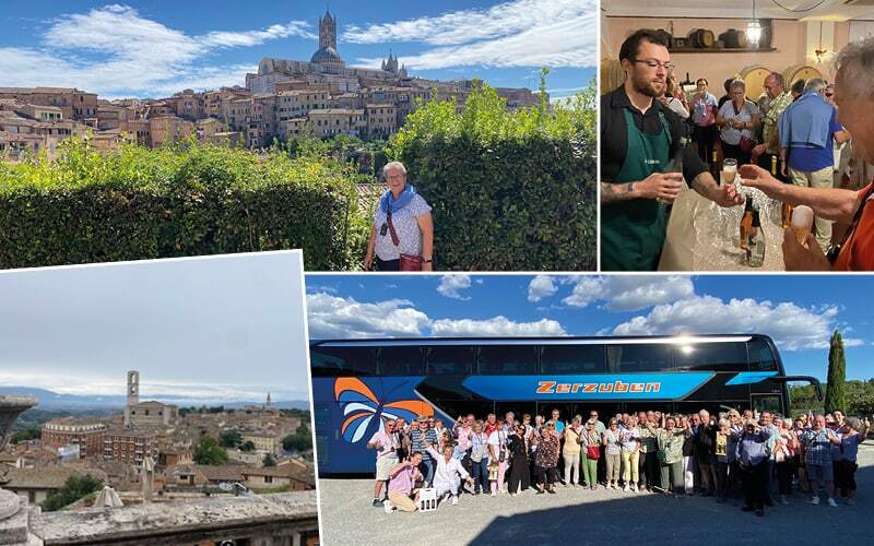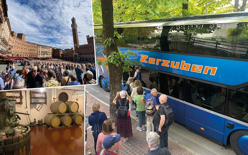 Am ersten Tag beginnen wir unsere Reise voller Vorfreude mit dem erfahrenen „Piloten“ Lotti und seinem beliebten Doppelstockbus, in Richtung Toskana. Unser Ziel ist Chianciano Terme, eine traditionsreiche Kurstadt, die für ihre heilenden Thermalquellen berühmt ist. Nach der Fahrt durch die malerische Landschaft erreichen wir gegen Abend total stressfrei die Stadt, die uns mit ihrer ruhigen und entspannten Atmosphäre willkommen heißt. Am Abend erwartet uns ein kulinarisches Highlight: Im Hotel genießen wir ein traditionelles toskanisches Abendessen. Von hausgemachter Pasta bis hin zu Fleisch und Gemüse und natürlich Tiramisu zum Abschluss, serviert von dem äusserst freundlichen Hotelpersonal, welches dafür sorgt, dass wir uns bestens aufgehoben fühlen.