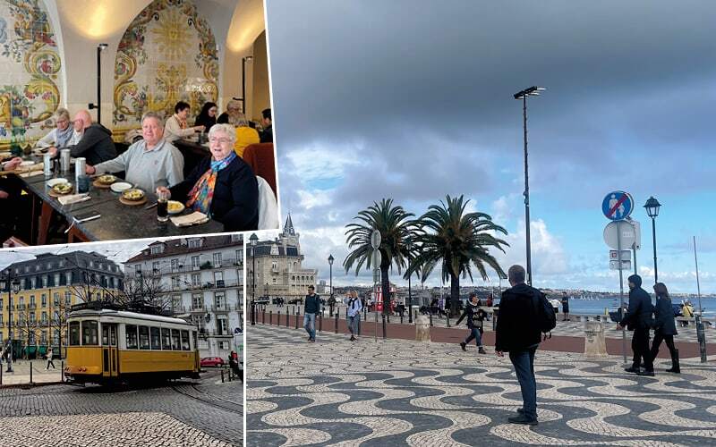 Uns zieht es jetzt ins Zentrum Lissabons, wo wir uns nach einem Ginja (Sauerkirschenlikör) und einigen Infos der lokalen Reiseleiterin verabschieden. Einige fahren mit dem Bus zum Hotel zurück, die andern machen sich auf, die Stadt zu erkunden, und fahren anschliessend mit dem ÖV oder dem Taxi ins Hotel zurück. Beides ist günstig im Vergleich zu uns. Um 18 Uhr treffen wir uns alle zu einem gemeinsamen Nachtessen in der Nähe des Hotels. Wie wir bald feststellen, ist es nicht typisch portugiesisch in unserem Sinn, sondern ein Lokal, das von jungen, lokalen Leuten frequentiert wird. Sehr typisch auf der Speisekarte sind die verschiedenen Francesinhas. Das sind eigentlich Sandwiches, die aus verschiedenen Schichten von Fleisch, Wurst, Käse, Brot und oft einem Spiegelei bestehen. Das Besondere an diesem Gericht ist die Sauce, die aus Tomatenmark, Bier, Portwein und Gewürzen hergestellt wird. Diese Sauce wird über das Sandwich gegossen und anschliessend im Ofen überbacken. Sollte man unbedingt probieren.