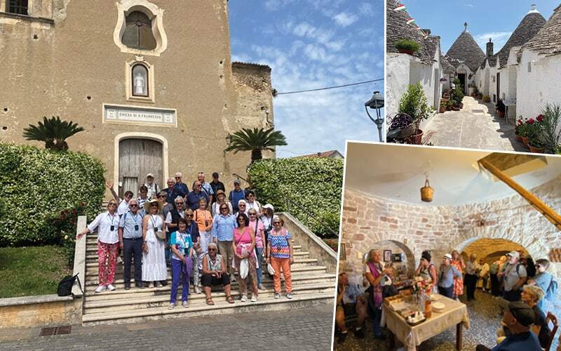 Strahlend weiss gekalkte Häuser lassen uns staunen. Ostuni thront malerisch über der Ebene mit Olivenhaine bis zum Meer. 60’000 Olivenbäume gibt es hier in Kalabrien, teilweise über 1000 jahre alt. Die engen, verwinkelten Altstadtgassen laden zum Bummeln und «Verlaufen» ein, und überall gibt es hübsche kleine Geschäfte, gemütliche Cafés und historische Kirchen zu entdecken. Die einen machen die spannende Führung mit und die anderen trinken gemütlich einen Kaffee in der Sonne.