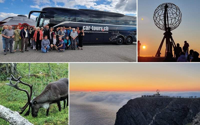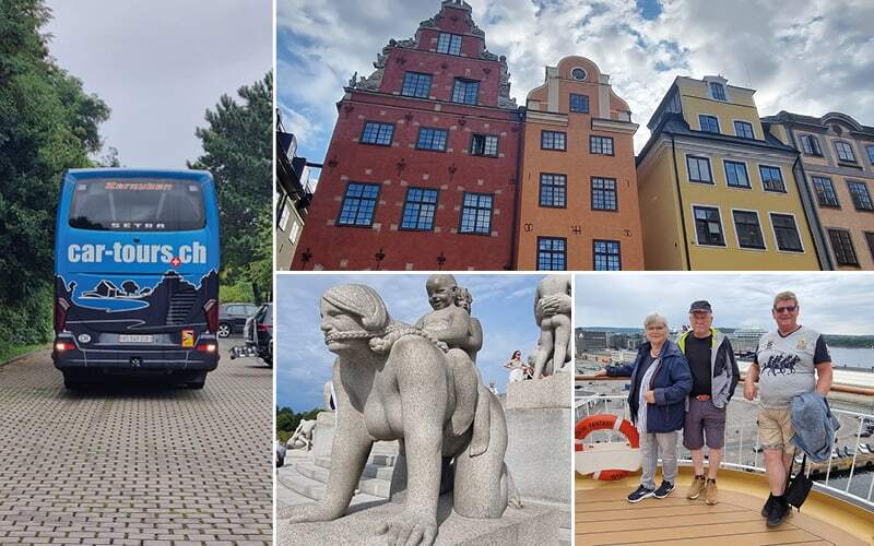 Um es gleich vorweg zu nehmen, der Titel „Traumstrassen des Nordens“ wird dieser phantastischen Reise in jeglicher Hinsicht gerecht. Aber nun erstmal der Reihe nach. Die Beweggründe, eine solch lange Gruppenreise zu buchen, sind vielfältig : einmal im Leben die Mitternachtssonne sehen, in Gesellschaft reisen, nicht selber fahren müssen, drei wunderschöne Länder, Norwegen, Schweden und Finnland, kennenlernen. Mit 27 Gästen „im Gepäck“ starteten wir an einem frühen Samstagmorgen in Sargans zu unserem skandinavischen Abenteuer. Gäste aus diversen deutschschweizer Regionen kamen zusammen – Sargans, Pfäffikon, Luzern, Zürich, Winterthur, Aarau, Bern, Thun und Basel. Dani von der Firma Zerzuben war unser erster Chauffeur, d.h. er begleitete uns die ersten 10 Tage, wurde danach von Jürg, ebenfalls von Zerzuben, für die zweiten 10 Tage abgelöst. 10 Tage ist das Maximum, das ein Chauffeur am Stück arbeiten darf, danach ist eine Mindestpause von 2 Tagen Pflicht.