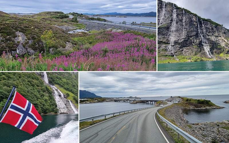 Die nächsten drei Tage waren geprägt von küstennahen Fahrten und traumhaften Landschaften, unterbrochen nur durch zahlreiche kurze Fährüberfahrten. Diese Fähren kann man nicht im Voraus buchen, wenn man Glück hat, erreicht man sie kurz vor der Abfahrt, wenn nicht, muss man durchschnittlich nur etwa 20 Minuten warten, da sie sehr häufig fahren. Dieser Abschnitt wird „Küstenstrasse“ genannt, sie verläuft zwischen Steinkjer und Bodø. Zahlreiche Tunnels und sechs Fähren werden benötigt, um die 650 km zu überwinden. Auf dieser südwärtsführenden Strecke überquerten wir wieder den Polarkreis, dieses Mal allerdings nicht in Rovaniemi, sondern in Storforshei und auch ohne Schnaps ! Selbstverständlich wurde dieser Moment photographisch festgehalten. Mit der Atlantikstrasse hatten wir noch einen weiteren Höhepunkt zu befahren. Dabei handelt es sich um einen 8274 Meter langen und kurvenreichen Abschnitt der norwegischen Reichsstraße 64 zwischen Molde und Kristiansund. Die 1989 eröffnete Strasse verbindet acht Brücken über mehrere kleine Inseln und zählt zu einer weiteren Touristenattraktion.