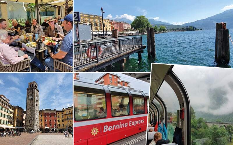 Tagesausflug mit dem Bus: Die Reiseleiterin Vivianne lebt im Val di Sole und begleitet uns heute auf der Rundfahrt. In Madonna di Campiglio sehen wir den Hang, wo jeweils der internationale FIS-Nachtslalom stattfindet. Eindrücklich sind die vielen Hotels und Appartementhäuser. Heute ist der Ort wie ausgestorben, was da wohl im Winter los sein wird? Die Bergkette der Brenta Dolomiten kann heute bei Sonnenschein fotografiert werden. Im Lago di Tenno ist der Wasserstand hoch, denn es hat in diesem Frühjahr ziemlich viel geregnet. Der Spaziergang über die Treppe runter und zurück zum See macht «glutschtig» auf einen Kaffee! Unterwegs gibt es an den Talseiten verschiedene Schlösser und Burgen zu sehen. Den Mittagshalt machen wir in Riva del Garda. Dieser mediterrane Ort liegt am Gardasee (der grösste See von Italien). Hier gibt es historische Gebäude, Palazzi, enge Gassen mit Verkaufsgeschäften. Von Lebensmitteln, Lederwaren bis Kleidung ist alles vorhanden. Für Speis, Trank und «Gelati» stehen genügend Lokale zur Auswahl.
