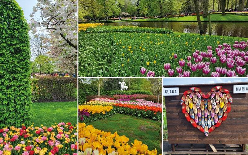 Der dritte Tag steht unter dem Motto: Blumenparadies Keukenhof in Lisse, der schönste Frühlingspark der Welt. Jedes Jahr gibt es ein spezielles Motto für den Tulpen- und Blumenpark, das im Jahr 2024 «Eine Welt der Farben» lautet – ein tolles Thema zur Feier des 75. Geburtstags der 32 Hektar grossen Keukenhof Parkanlage. Bereits bei der Ortseinfahrt von Lisse werden Laute des freudigen Erstaunens im Bus vernommen: Entlang der Hauptstrasse leuchten riesige Tulpenplantagen in bunt-blühender Pracht. Die Vorfreude auf unseren Blumenpark Besuch wird durch diesen «Augenschmaus» noch mehr gesteigert. Was uns im Keukenhof-Park an der diesjährigen Frühlingsausstellung erwartet, ist kaum zu beschreiben. Natürlich sind wir nicht die einzigen Gäste, das geniale Wetter lockt auch viele spontane Tagesbesucher an. Diese liebevolle, kreative und von Gartenarchitekten jedes Jahr neu gestaltete Blumenpracht, soweit das Auge reicht, aus sieben Millionen Blumenzwiebeln, ist ein kaum zu überbietendes florales Erlebnis. In verschiedenen Pavillons und Gebäuden werden separate Ausstellungen und Gastronomie Angebote präsentiert. Die schönen Wege bieten auch Sitzgelegenheiten auf Parkbänken um die Atmosphäre dieses «Paradieses auf Erden» im eigenen Zeitplan zu geniessen.