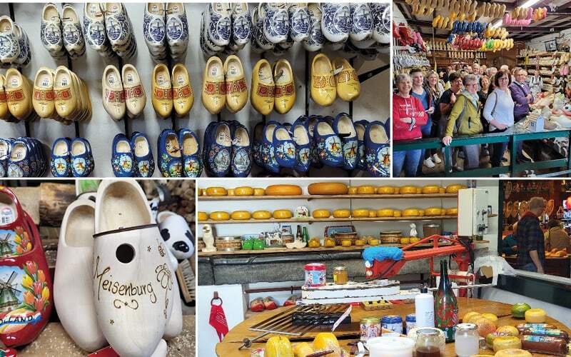 Auf der Rückfahrt zum Hotel ist unser Bauernhof Besuch mit Holzschuh-Werkstatt und Gouda Käserei angesagt. Hier, auf dem Hof von «Clara Maria», begrüsst uns Bauer «Chees» und erklärt mit Stolz, wie umtriebig sein Mehr-Generationen Landwirtschafts-Familienbetrieb funktioniert. Bereits werden wir zum Besuch in der «kleinen» 1-Mann Holzschuh Fabrikation erwartet. Sehr spannend und kreativ wird für uns ein Holzschuh produziert und verschiedene Möglichkeiten des Tragens der Holzschuhe werden uns humorvoll als Ideen präsentiert; Schmunzeln und Lachen ist erlaubt. Hier könnten wir auch «Eigenmarken» produzieren lassen. Danach werden wir haus-intern in die hofeigene Käserei geführt. «Chees» demonstriert seine Gouda Käseproduktion. Die zahlreichen Käse Variationen von Chilli-, Heineken Bier-, Ingwer-, Knoblauch-, Rauch-Käse und andere mehr, begeisterten uns. «Chees», der Käse-Verführer, überzeugt uns total bei der Käseverköstigung. Es besteht absolut kein Kaufzwang. Trotzdem, sein Verkaufserfolg aus dem vielseitigen Sortiment des Hofladens ist garantiert. Fröhlich und zufrieden, in niederländischer Sprache «gezellig en lekker» verlassen wir den Bauernhof und erfreuen uns während der komfortablen Rückfahrt zum Hotel über die tollen, bestimmt unvergesslichen, Erlebnisse. Bereits steht unser letzter Abend im Hotel auf dem Programm. Wir freuen uns erneut auf das feine Abendessen.